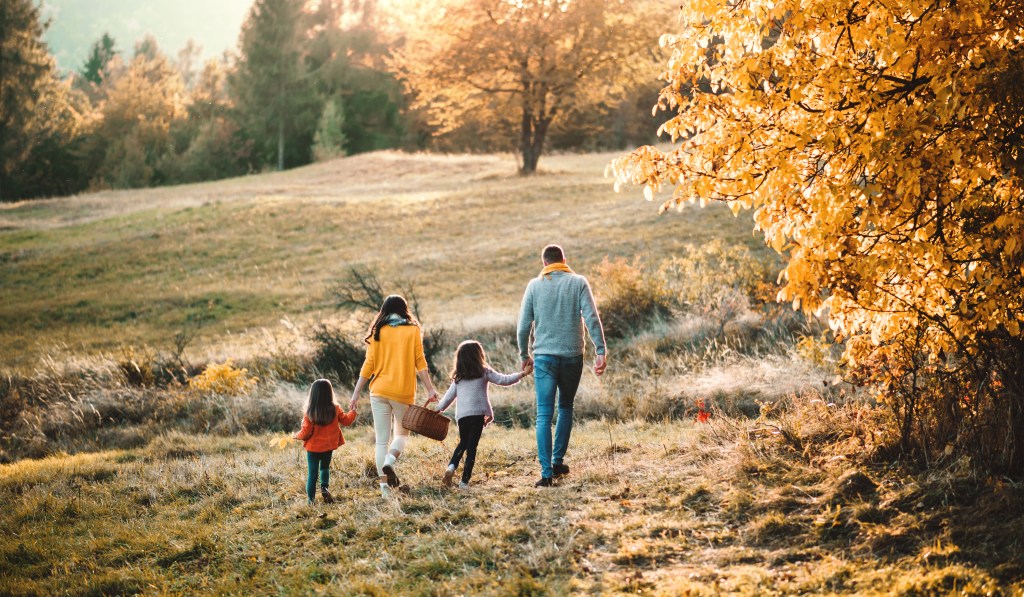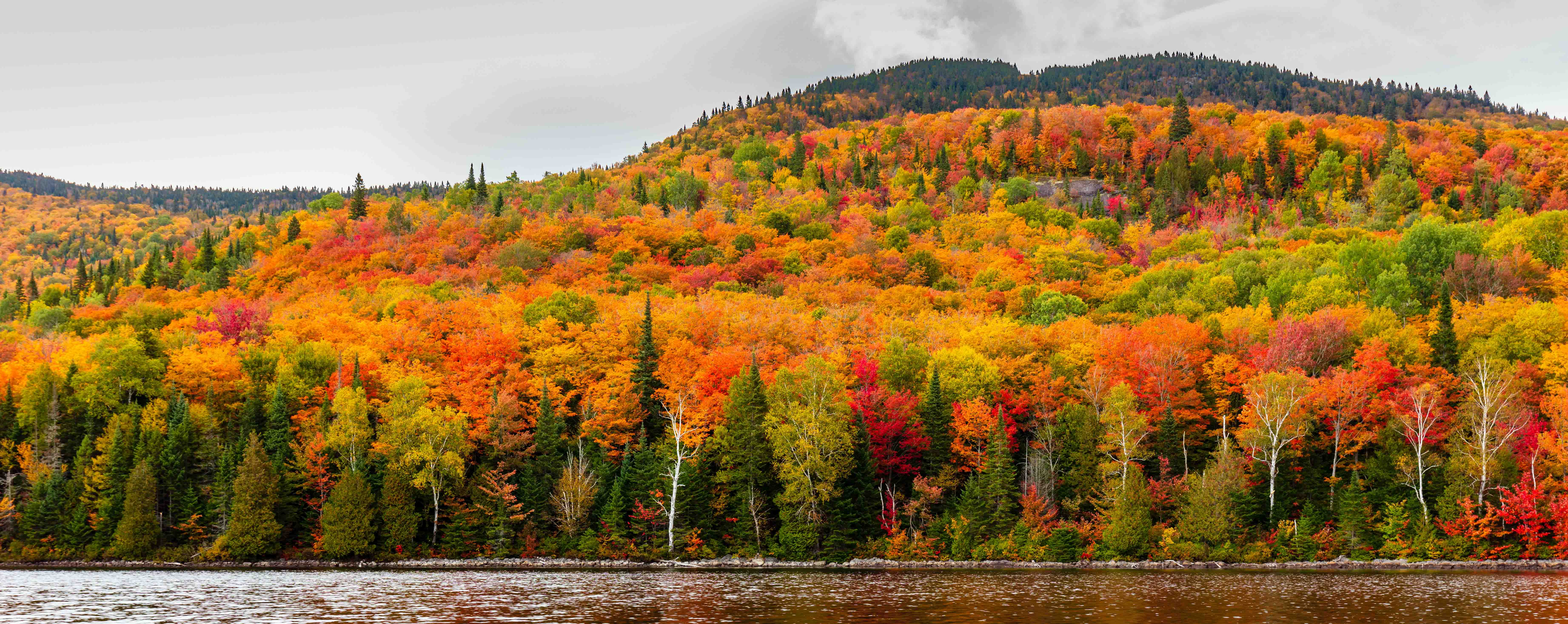Fall scene in the Quebec cottage country with golden leaves and fall colors.